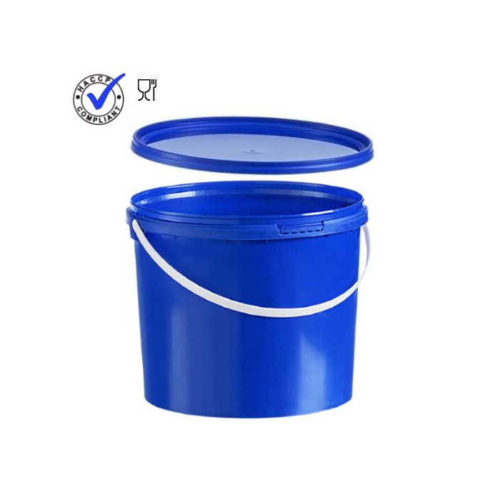 Blue pail with lid and carrying handle from NORAH Plastics, the best choice for packaging various products and suitable for storage, transport or production of solids and liquids. Our buckets are made entirely of polypropylene so are free of metals and have in most versions a vacuum sealing lid with carrying handle, are freezeproof, odourless and tasteless. Suitable for Food and Non-Food applications and are used daily in various sectors as reusable packaging or production buckets. Because of the smooth rounded inner and outer walls, the buckets can be cleaned easily and hygienically. Empty, the buckets can be stacked on top of each other to save on storage or transport. Our buckets comply with the quality systems that are demanded nowadays, such as HACCP, BRC and NSF regulations. Individual printing such as full-colour IML design, printing of company logos possible on request - Suitable for the food sector, pharmaceutical industry, trade, retail, commercial sectors, catering and health care institutions.