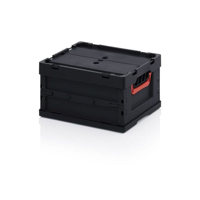 ESD folding bin with lid 40x30x22cm, capacity 19 liters