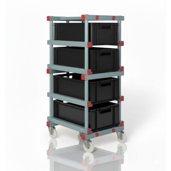 - Bin trolley, including 4 eurosize stacking bins 60x40x22cm