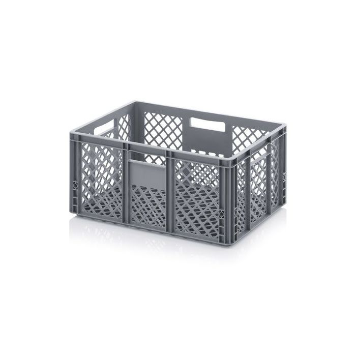 Our Euro Stacking Containers and Stacking crates with perforated bottom and side walls are very suitable there where optimal cooling circulation during transport or storage plays an important role. The large perforations in the trays maximizes airflow,which is a big advantage in storage and transport during transport perishable foodstuffs. The perforated crates are mutually stable stackable and compatible with other Euro plastic containers, Plastic pallets, Roll cages and Transport dollies. Our ventilated plastic crates are suitable for a variety of industries and offer efficient handling, storage and transport. Thanks to many different heights they meet all kind of industry needs. Durable, versatile and easy to handle, they are the perfect solution for automated handling systems.